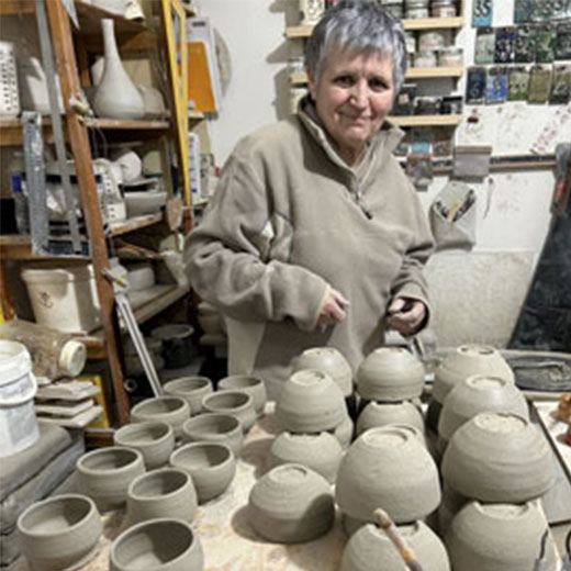 « Dans l’atelier, je vous aiderai à écouter et faire confiance à vos mains: j’ai l’intime conviction que vos mains pensent, sentent, voient et interagissent avec votre pensée. Elles vous guideront dans l’univers de la poterie et du raku.”